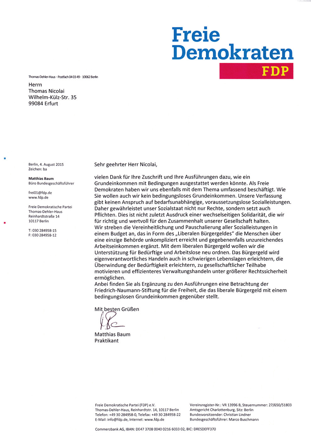 Büro des Bundesgeschäftsführers der FDP geschrieben Matthias Baum